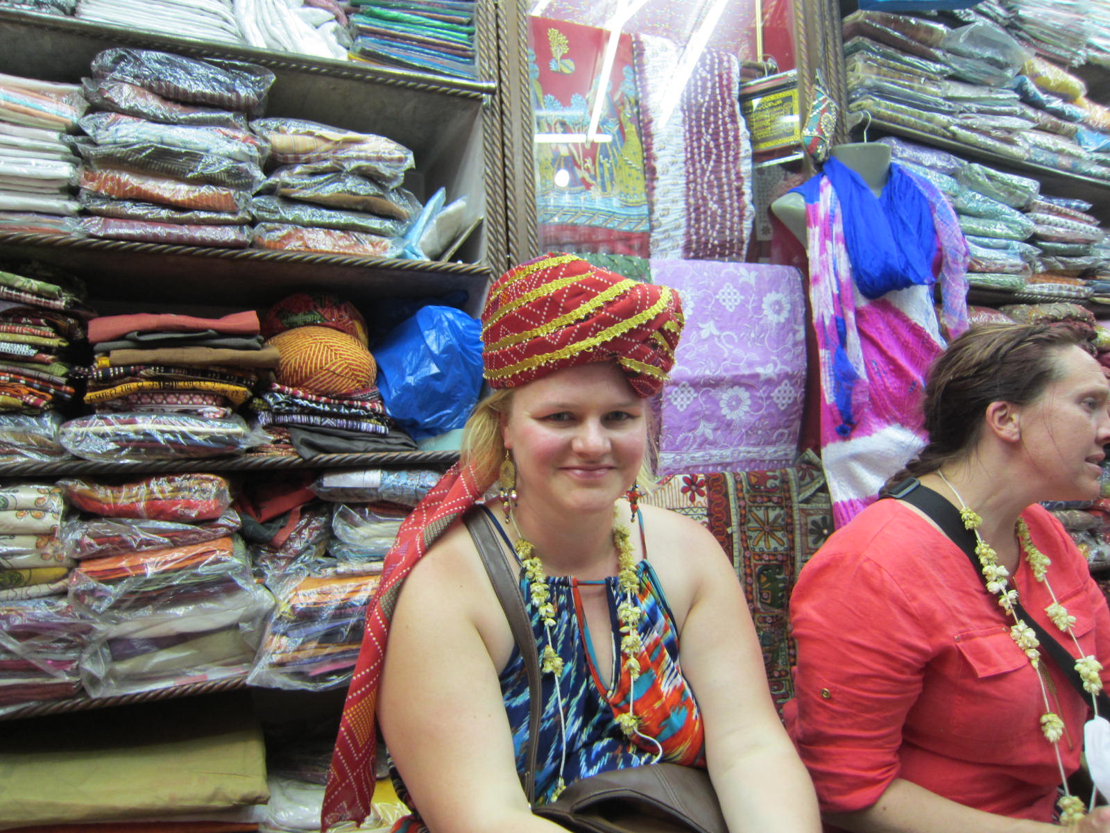 I am all for a game of haggling, but when the heat is oppressive and you just want slow down a bit, I recommend visiting one the larger stores, off of the main drag, where you can shop a bit more peacefully. We visited a wonderful shop, Krishna Textiles, that I would highly recommend going to (located at Opp. Golimer Sadan, Near Hotel Glitz, Sitaram Puri, Amer Road). I am only sharing this place based on my personal experience, not because I was asked to. I really appreciated the owner, Manu and how he treated us when we visited. There is no pressure at all to buy. You can browse at the massive variety of items they have from bedding to pajamas to silk scarves to bags to tunics, without being bothered or hassled. They eliminate haggling by providing you a reasonable price at the start. If you are interested in something in particular, they will assist you and show you a variety of options until find you what you are looking for.