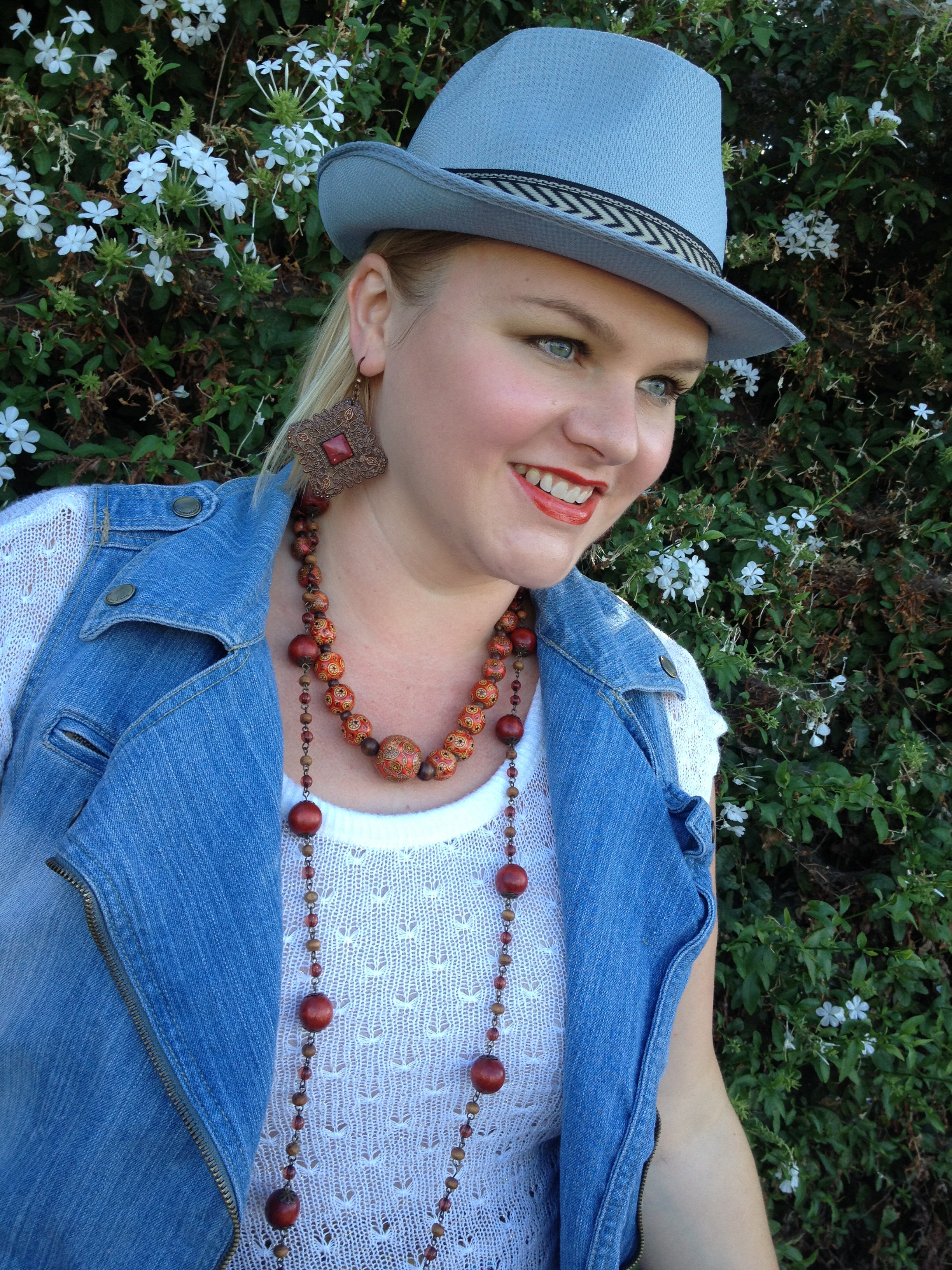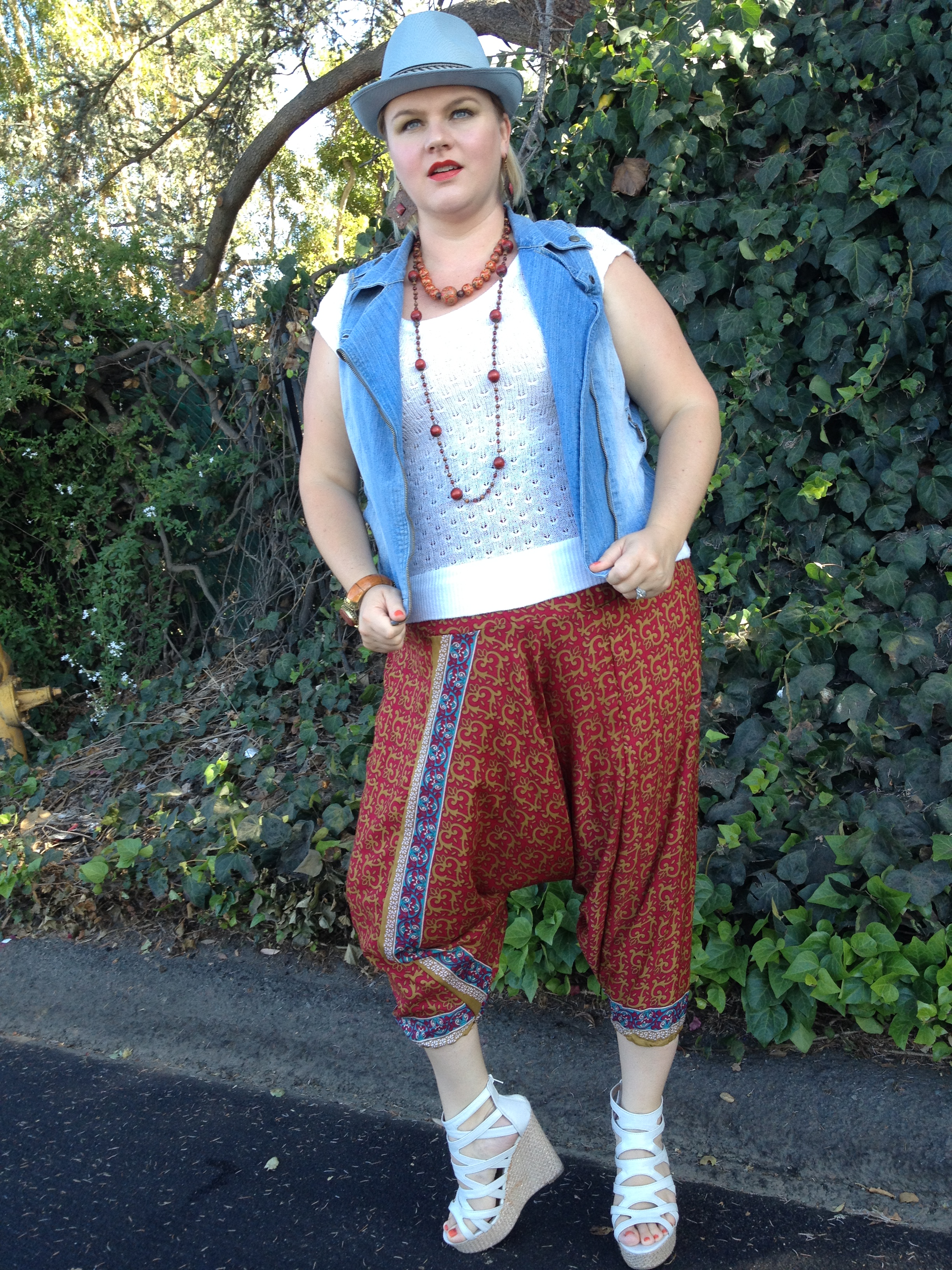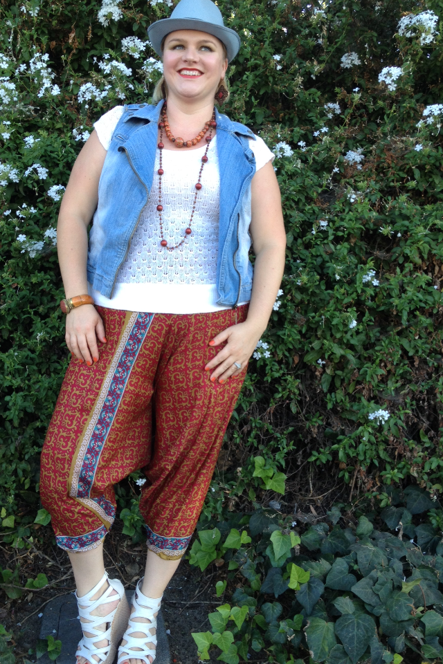 {Top/Vest/Marshall’s, Pants/Bought In India, Bracelet/Bought In Kenya, Necklaces/Bought In St. Lucia, Shoes/Lola Shoetique, Earrings/Hat/Santee Alley}